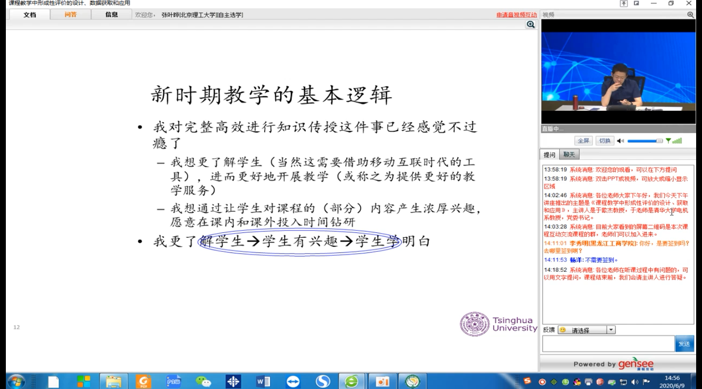 6月9日下午,清华大学于歆杰教授以“课程教学中形成性评价的设计、数据获取和应用”为题做了直播分享。于老师首先介绍了什么是形成性教学评价,形成性教学评价和老师有什么关系。随后,具体讲解了如何实现形成性教学评价。然后,介绍了形成性评价在三个不同教学场合的应用:在工程认证中的形成性评价(OBE课程重塑),于老师以自己课程为例,讲解了如何梳理出课程的基础成效(毕业要求),如何计算成效达成度、课程达成度;在一流课程建设与申请中形成性评价的应用;在目前疫情时期的形成性评价的应用。讲座最后,他总结了形成性评价在应用中的关键点和应用价值。