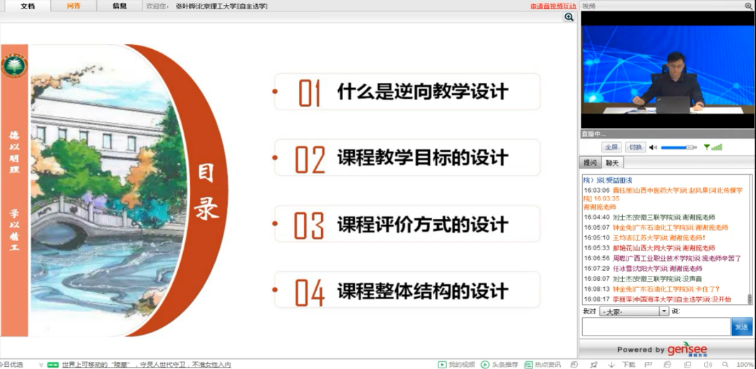 王青老师给大家分享的是“以学生为中心的逆向教学设计”。王老师在庞老师讲解了“以学生为中心”的教学理念和策略的铺垫下,继续深入讲解了如何做以学生为中心的逆向教学设计。他指出逆向教学设计是可以适用于不同学科不同科目的教学设计方法。他从什么是逆向教学设计,课程教学目标的设计,课程评价方式的设计和课程整体结构的设计等四个方面详细介绍了如何做逆向教学设计。最后,王老师与学员们进行了互动,用实际案例深入浅出的解答了学员们提出的问题,学员们表示王老师的讲座干货满满。